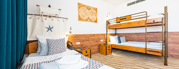 Jako na pirátské lodi – výjimečné dvoupokojové apartmá vhodné až pro 7 osob, ideálně pro 2 dospělé a až 5 dětí.